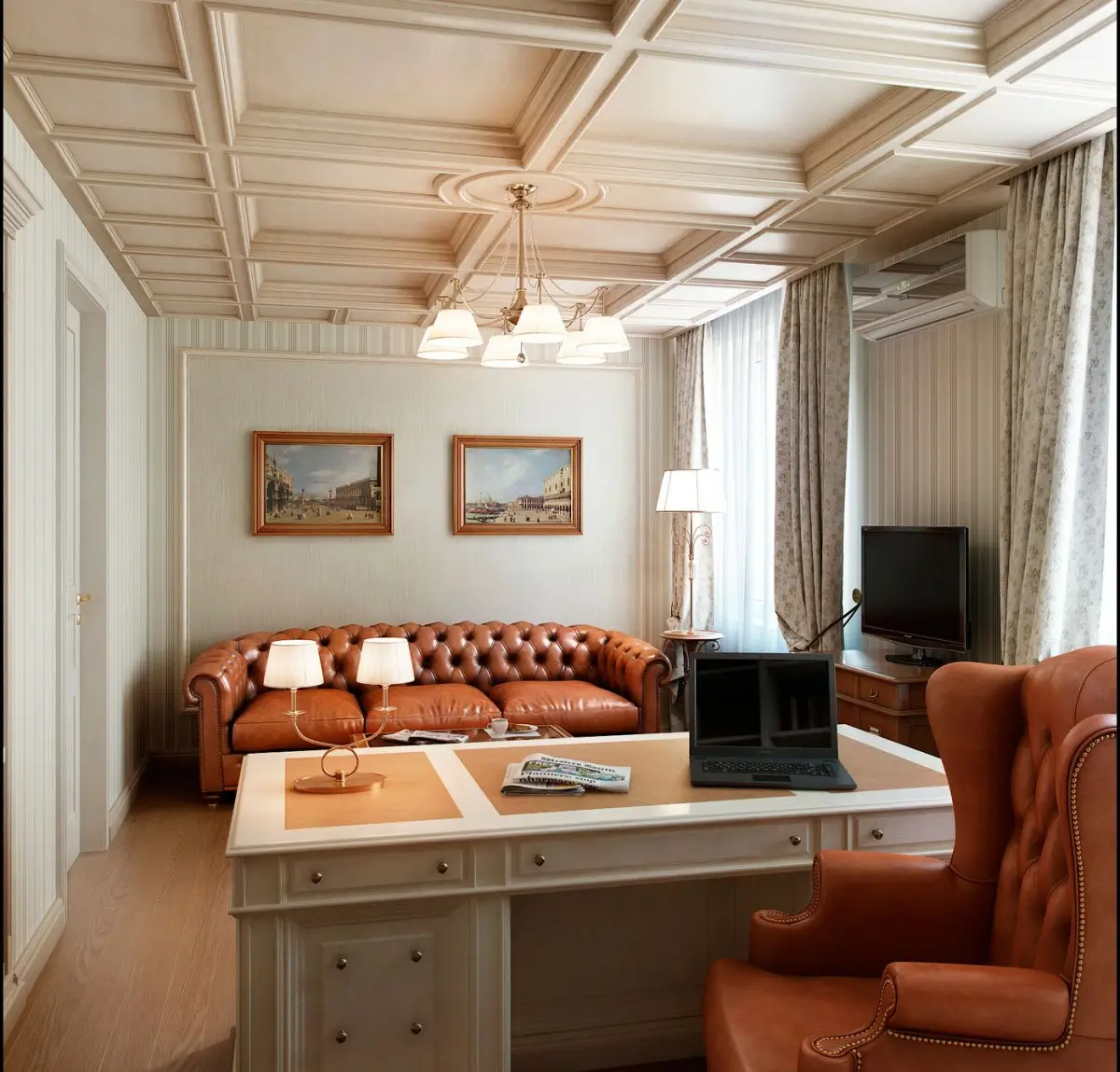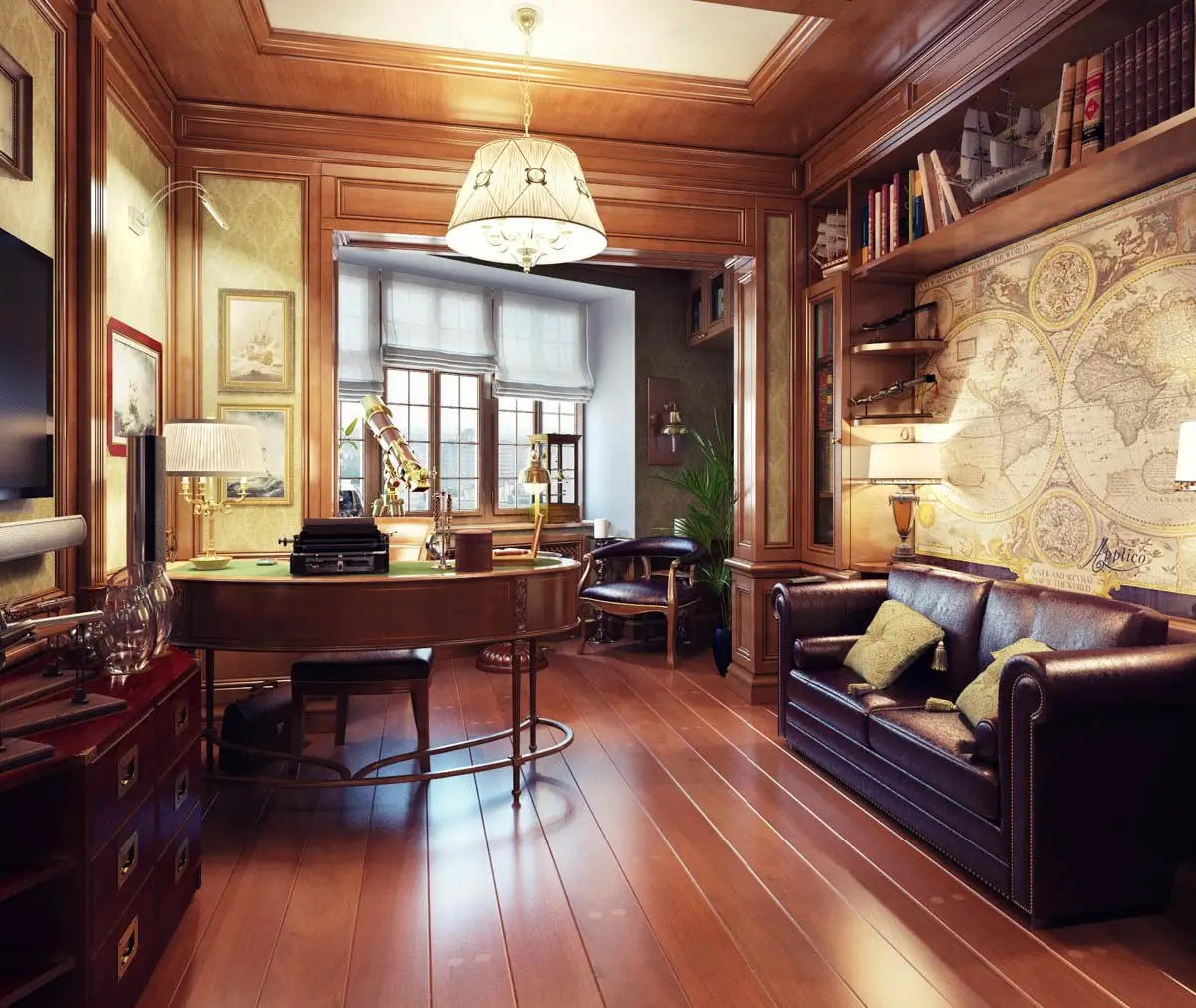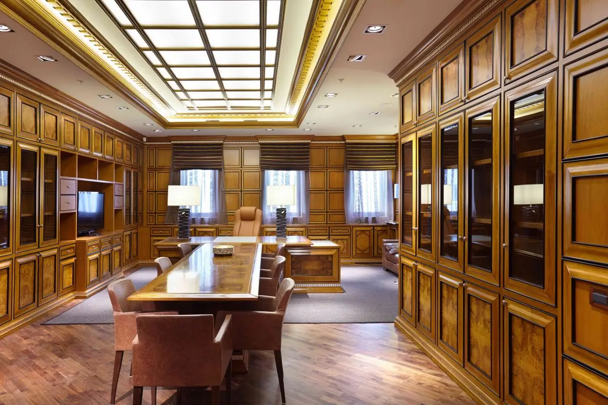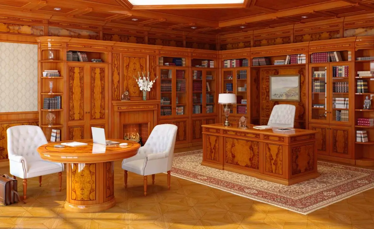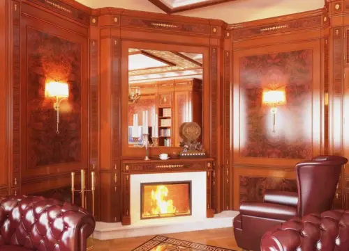 Деревянная комната, интерьер которой может быть выполнен в самых разных стилях, всегда выглядит богато, солидно. Гостиная, спальня, кухня, рабочий кабинет − натуральная древесина может быть использована для отделки и оформления помещения практически любого назначения. Для создания классического интерьера дерево является самым подходящим материалом: из нее изготавливают стеновые панели, которые могут быть украшены ажурной резьбой, молдингами, выступающими цоколями, также древесина используется и в виде напольного покрытия. Настоящий, натуральный паркет, хоть и встречается в последнее время не так часто, как ламинат или ковролин, ценится очень высоко. Да, его стоимость будет намного выше, чем цена на другие покрытия, но, с другой стороны, паркет прослужит намного дольше, сохраняя при должном уходе свои свойства и внешний вид несколько десятков лет.